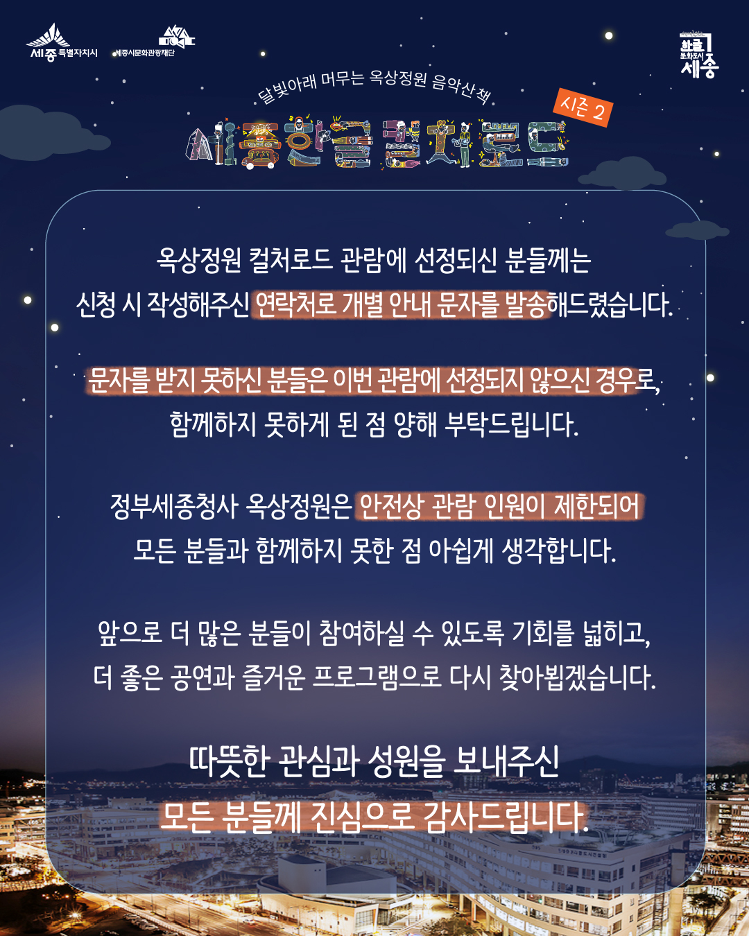 '달빛아래 머무는 옥상정원 음악산책 with 컬처로드' 관람 선정 안내