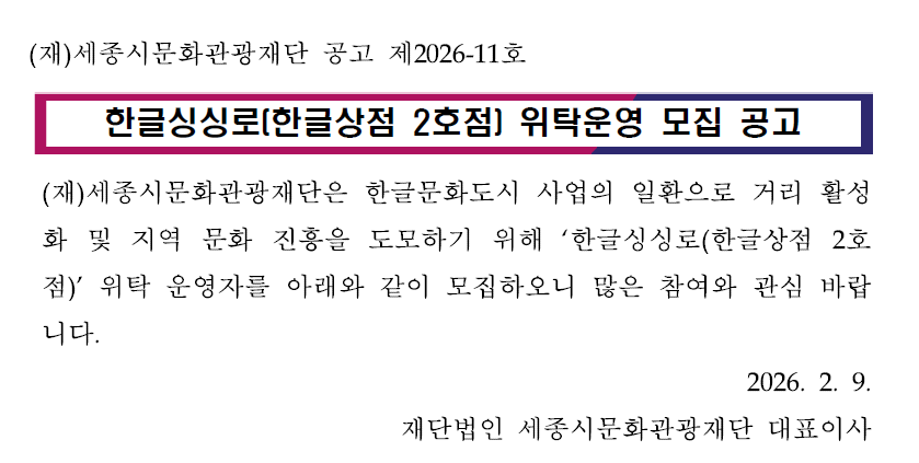 한글싱싱로(한글상점 2호점) 위탁운영 모집 공고