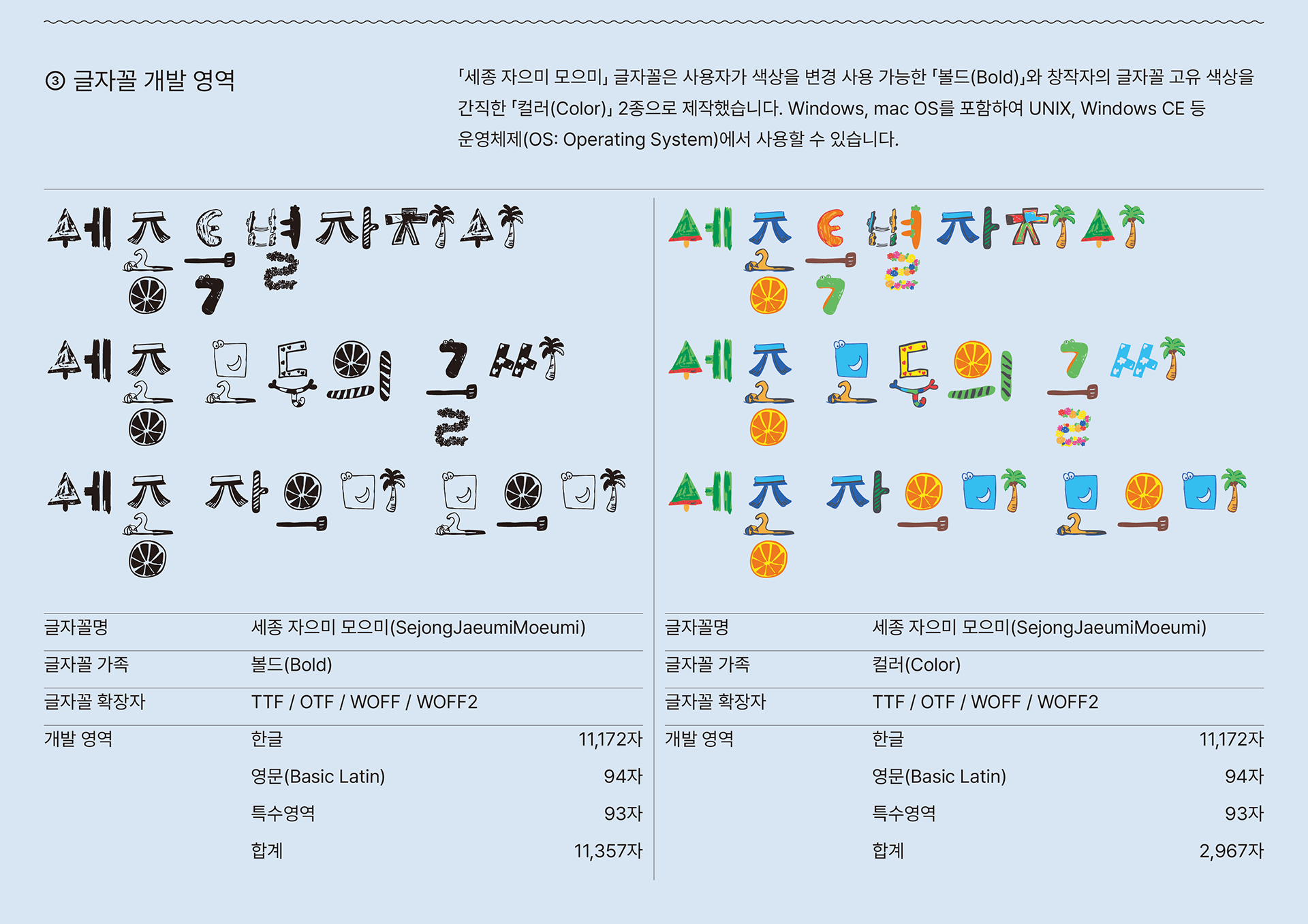 예) 이 게시글은 세종자으미모으미체를 사용하여 작성되었습니다.