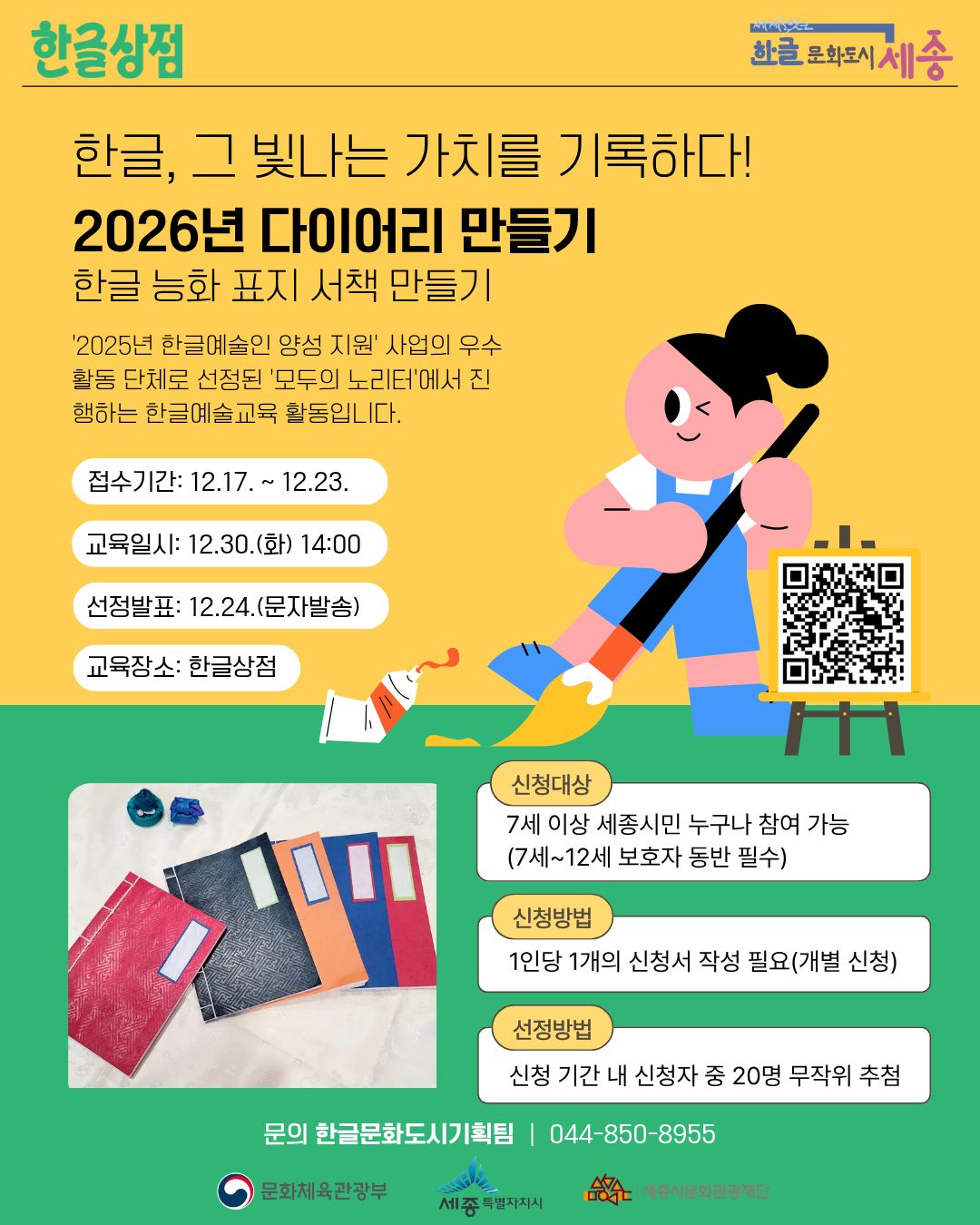 운영 장소 : 한글복합문화공간 '한글상점' (어울누리로 67, 148호)