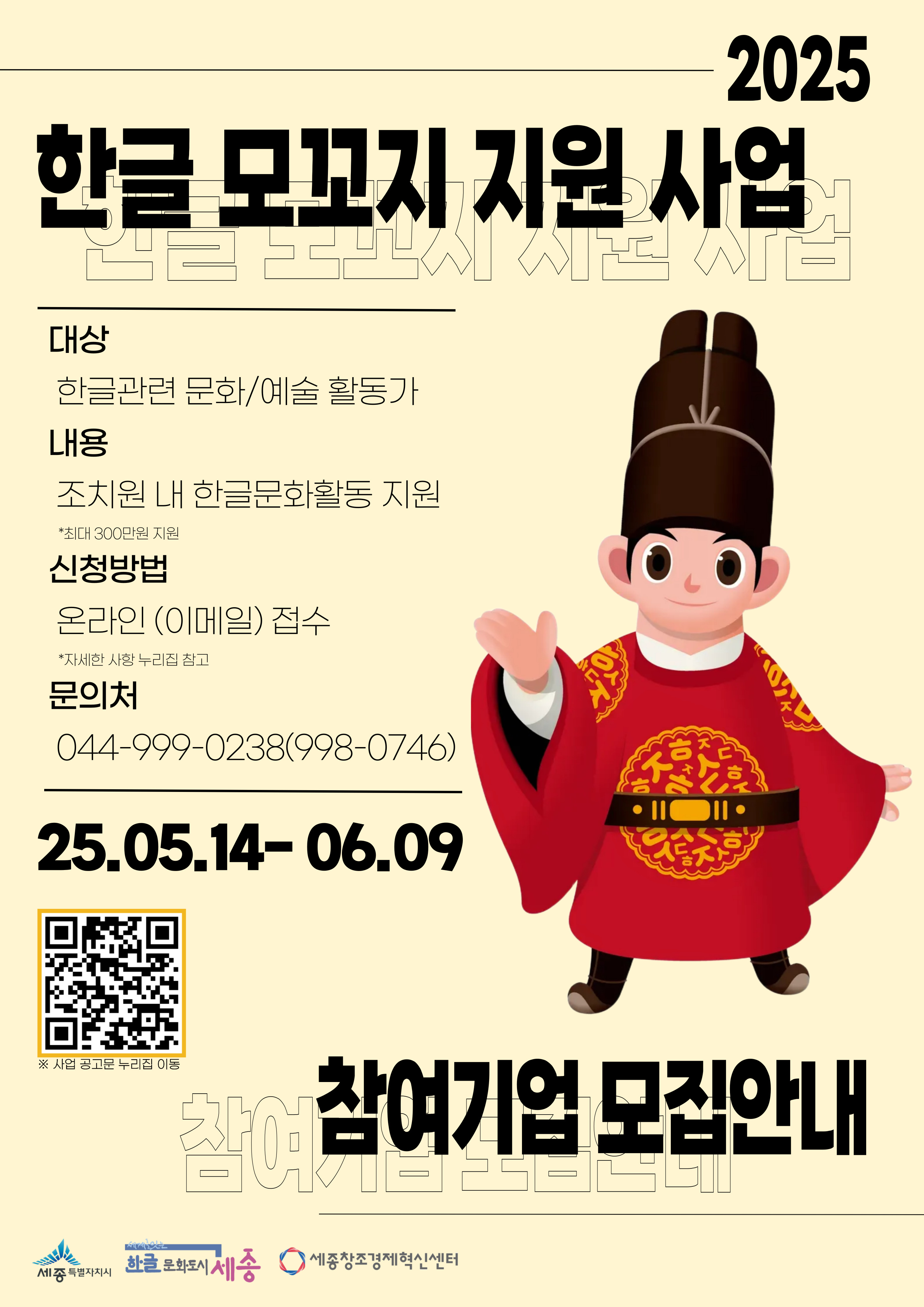 한글문화 프로그램으로 활성화된 한글예술인 마을을 조성하기 위해 조치원을 기반으로 진행되는 한글문화 활동(공연, 전시, 체험 프로그램 등) 지원