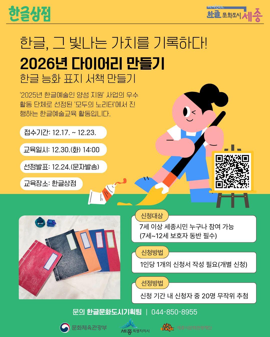 2026 한글사랑 여민락 아카데미 상반기 정기강좌(미술)